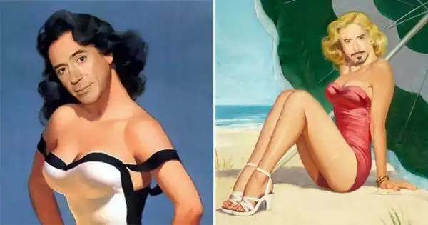 Роберт Дауни - младший - такой красавчик, что с легкостью может заменить красоток на плакатах в стиле пинап! Так решили дизайнеры-шутники, изготовившие целую серию плакатов, на которых личико легкомысленной красавицы заменили лицом голливудской звезды. Наслаждайтесь!