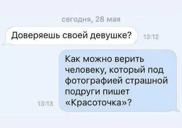 Чувак, хватит писать моей девушке. — Нашей девушке.