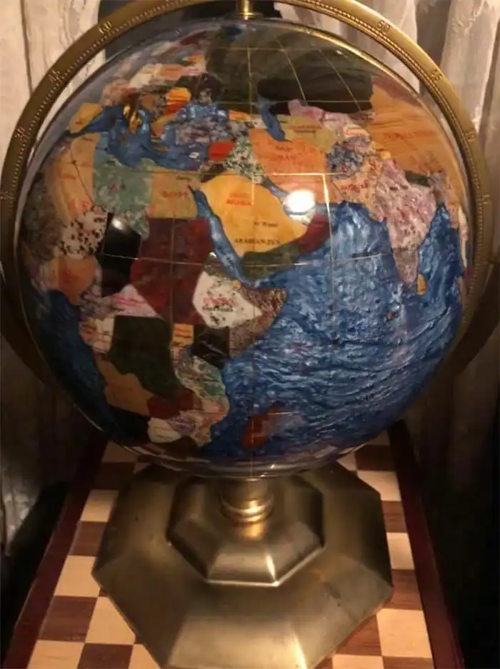7. "Спас этот самодельный глобус из сваленного в кучу барахла. Медная основа и инкрустация полудрагоценными камнями - очень необычно!"