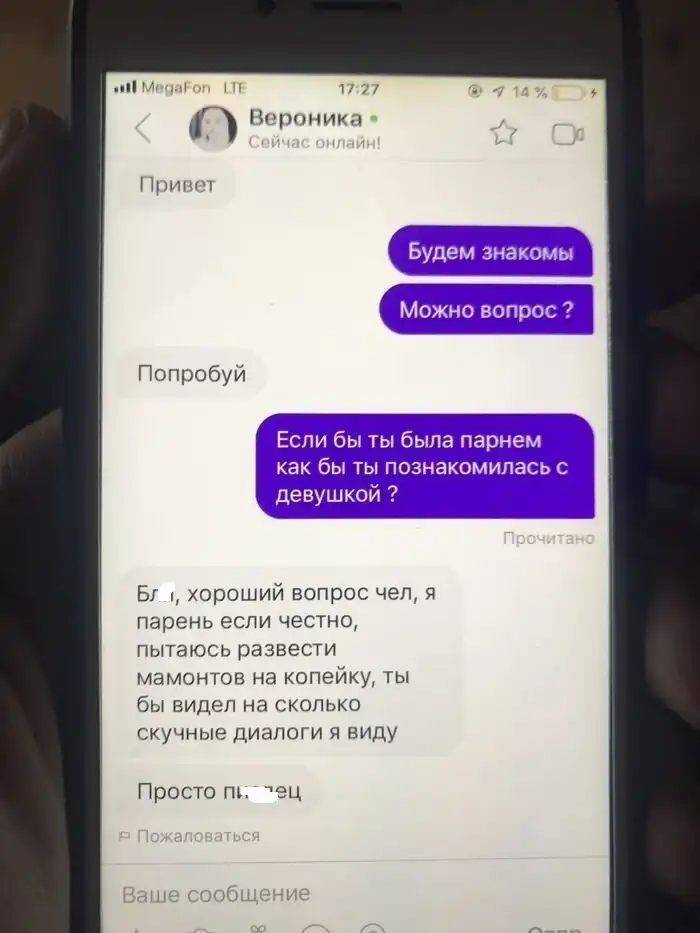 Интернет - это сейчас главное место, где люди знакомятся и находят себе спутников жизни. Но иногда на специализированных сайтах попадаются такие кадры... Ой, что тут объяснять, смотрите сами!