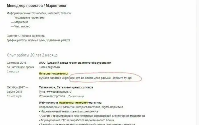 7. Они так уверены в себе, что могут позволить в резюме абсолютно всё