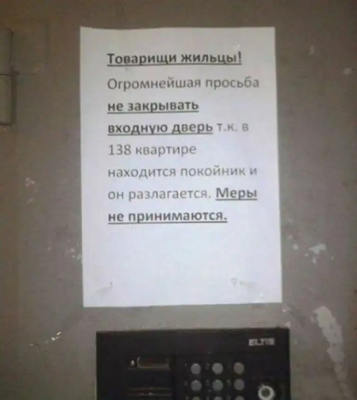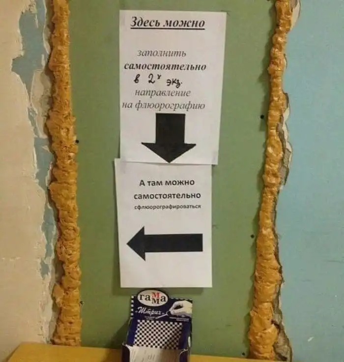 И правда - как можно объяснить иноземцу, что банк не работает, потому что все его сотрудники ушли в отпуск, накручивать использованную туалетную бумагу на рулон не стоит, а трупы перед уходом нужно непременно укутывать?! Такое поймут лишь наши люди (и то - не все.) Все-таки нашу страну действительно сложно понять всем, кто родился не в России. Потому что, ручаемся, увидев подобные объявления, забугорный гость не будет знать, что и подумать. А русские лишь улыбнутся и пожмут плечами - а что непонятного?