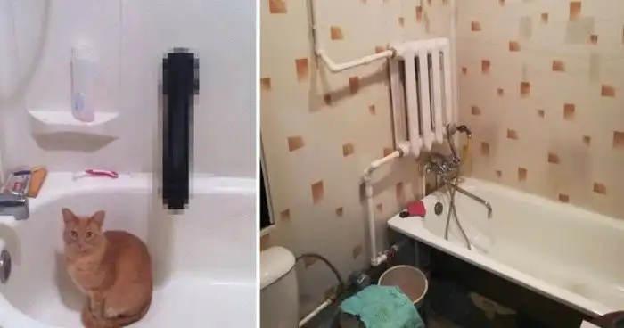 А то потом такие вот подборки получаются. Ванная комната — это кладезь приколов и странностей.