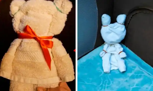 «Моя мама пыталась сделать милого медведя из полотенец. „Мне нужно попрактиковаться“, — сказала она, убирая это, прежде чем его кто-либо увидит»