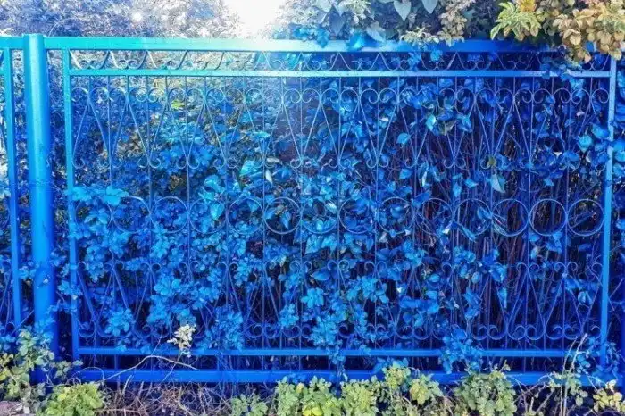 Синее небо, синее кусты, синие коммунальщики, которые все это красили