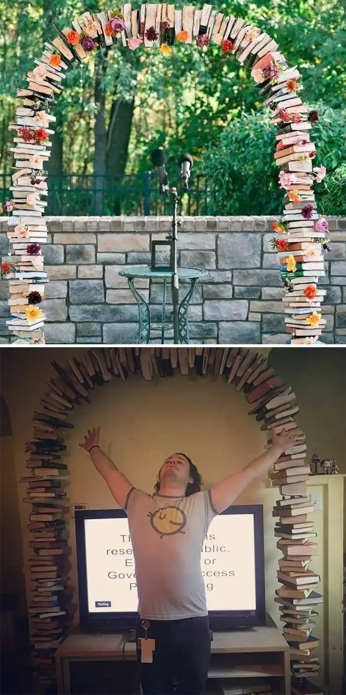 3. Парочка нашла на барахолке "книжную" арку - сначала они использовали ее на своей свадьбе, а потом поставили дома