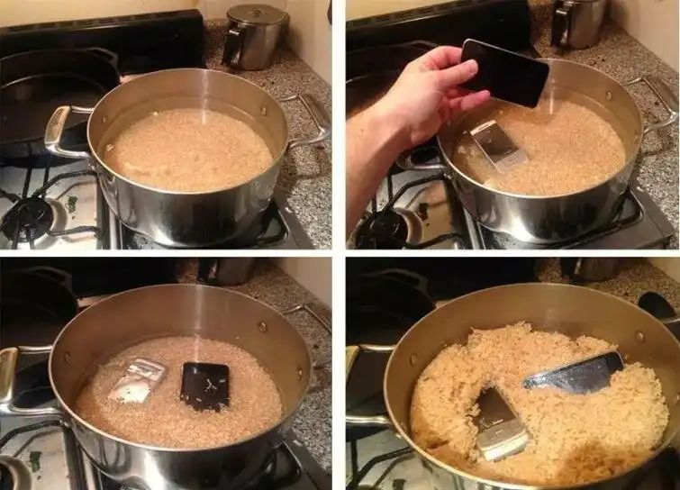 Когда ваш телефон намокает, вы должны положить его в сырой рис, чтобы вытянуть влагу. Поэтому, когда вы готовите рис с большим количеством воды, добавьте туда несколько телефонов!