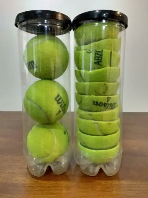 Разрежьте свои теннисные мячи пополам, чтобы хранить больше в каждом контейнере