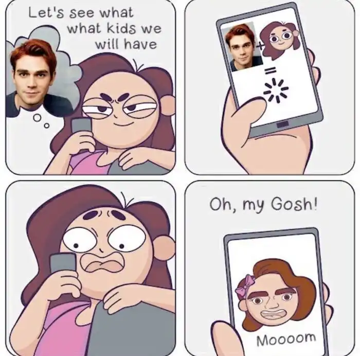 "Ну-ка, посмотрим, какие у нас могли бы быть дети... О боже!"