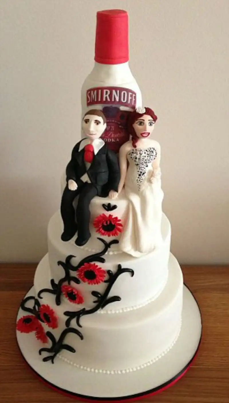 Некоторые торты посвящены общим интересам влюбленной пары, будь то бутылка водки Smirnoff…
