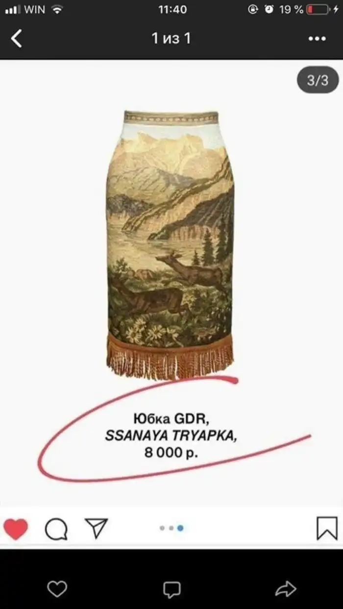 А это продукт российской компании с замечательным названием "Ссаная тряпка". Ни у кого не завалялся в бабушкином доме коврик с оленями из детства? Можно сшить юбку девушке, чтобы была в тренде!