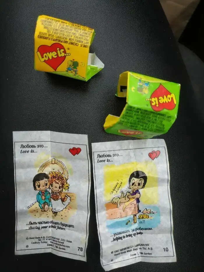 Знаменитая жвачка Love is... Как выяснилось, текст на вкладышах не имеет ничего общего с реальностью