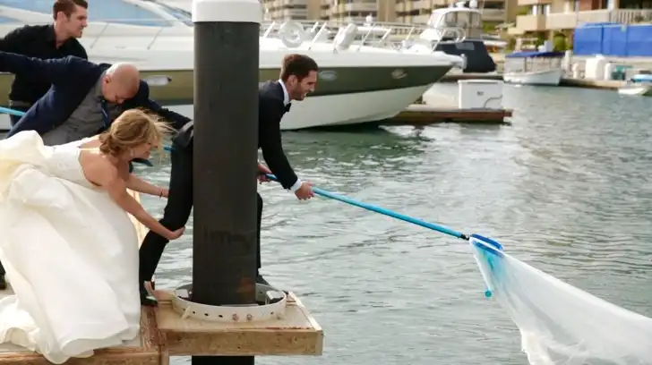 Во время свадьбы на причале с невесты сдуло фату. Пришлось