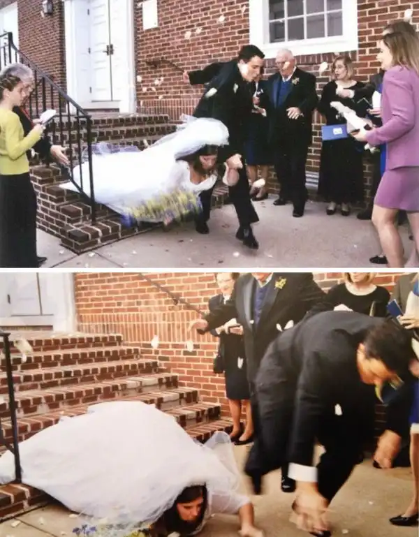 Жених поскользнулся во время выхода. Реакция невесты бесценна