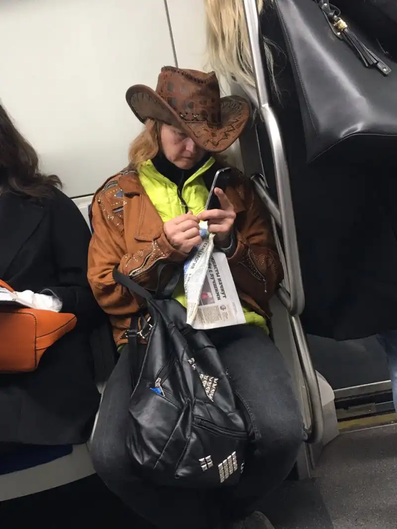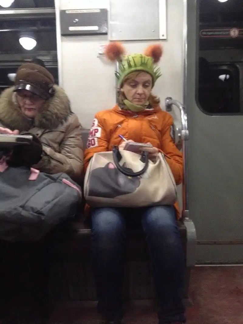 Очередная подборка фотографий со странными и модными персонажами, которых можно встретить в российском метро.