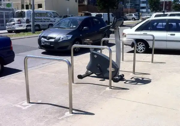 Кто-то припарковал свой велотренажер на парковке для велосипедов