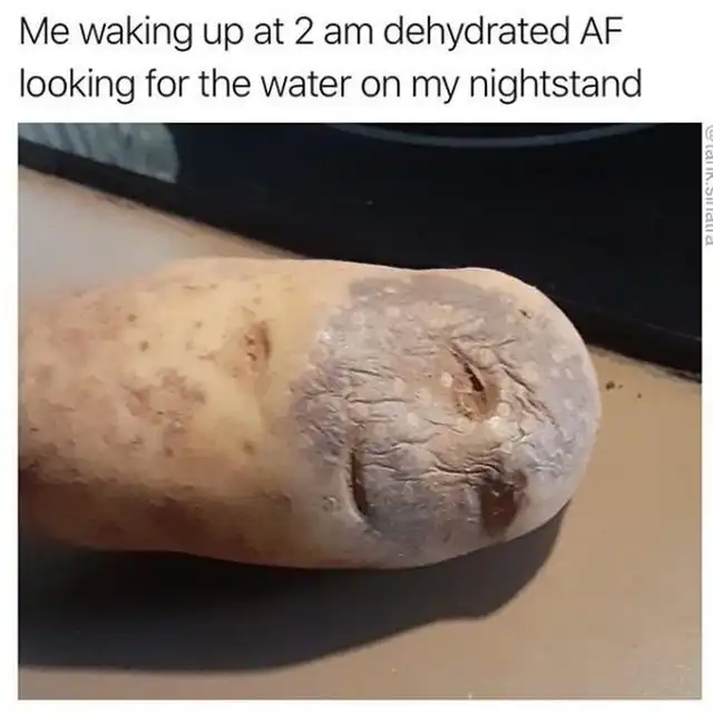 Перевод: «Я просыпаюсь в два часа ночи пипец какой обезвоженный и ищу воду на своей тумбочке».