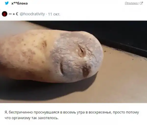 В соцсетях родился новый мем, который мгновенно обрел популярность. Пользователь с ником "bryanfantana74" выложил в Сеть фото картошки, которая напоминает грустного и сморщенного старичка или лорда Волан-де-Морта. Так овощ стал героем многочисленных фотошоп-баттлом и обеспечил себе почетное место в истории мемов. Вот как выглядит эта картофелина.
