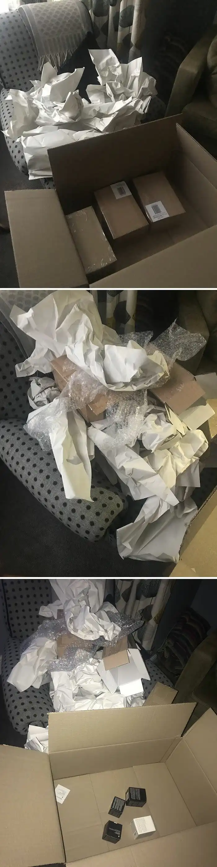 "Мы заказали детское питание, а когда получили его, так и не поняли: зачем каждую упаковку так тщательно завернули в пленку? Чтобы родители помучились?"