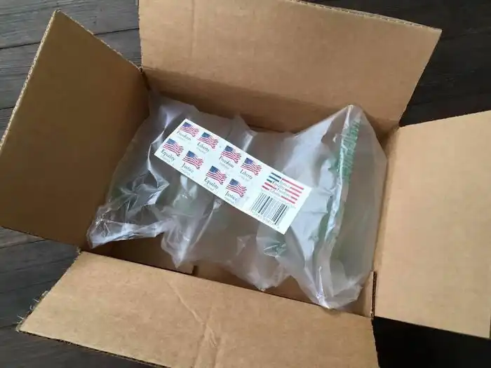 "Если вы заказете марки на Amazon, вы получите их вот в такой коробище"