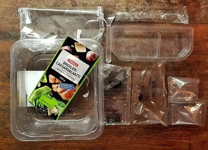 Салат Цезарь - это не только еда, но и шесть пластиковых пакетов и контейнер!