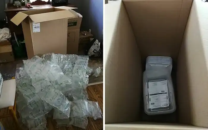 Огромный ящик, куча бумаги - и все ради маленького пузырька!