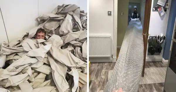 "Во всей этой бумаге ко мне были доставлены экологичные лампочки для люстры. Экологичненько, правда?"