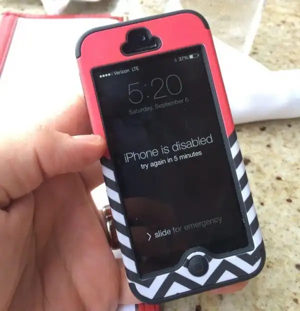 «IPhone заблокирован. Попытайтесь снова через 5 минут».