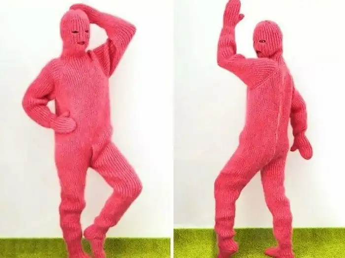 3. Розовый комбинезон из пушистого мохера (свитер, штаны, носки, балаклава, варежки). 385 долларов