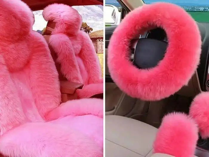 17. Автомобильные чехлы на передние сиденья и руль, розовый мех. 138,89 долларов