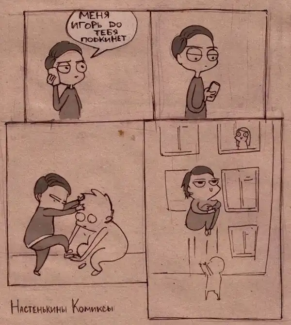 Давно у нас не было этих комиксов, нарисованных на коричневой оберточной бумаге. Предлагаю вашему вниманию абсолютно новую подборку авторских комиксов. Автор этих комиксов Настя Лемова, милая девушка из Сыктывкара, которая ни дня не может прожить без рисования.