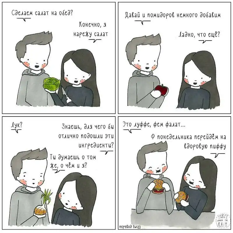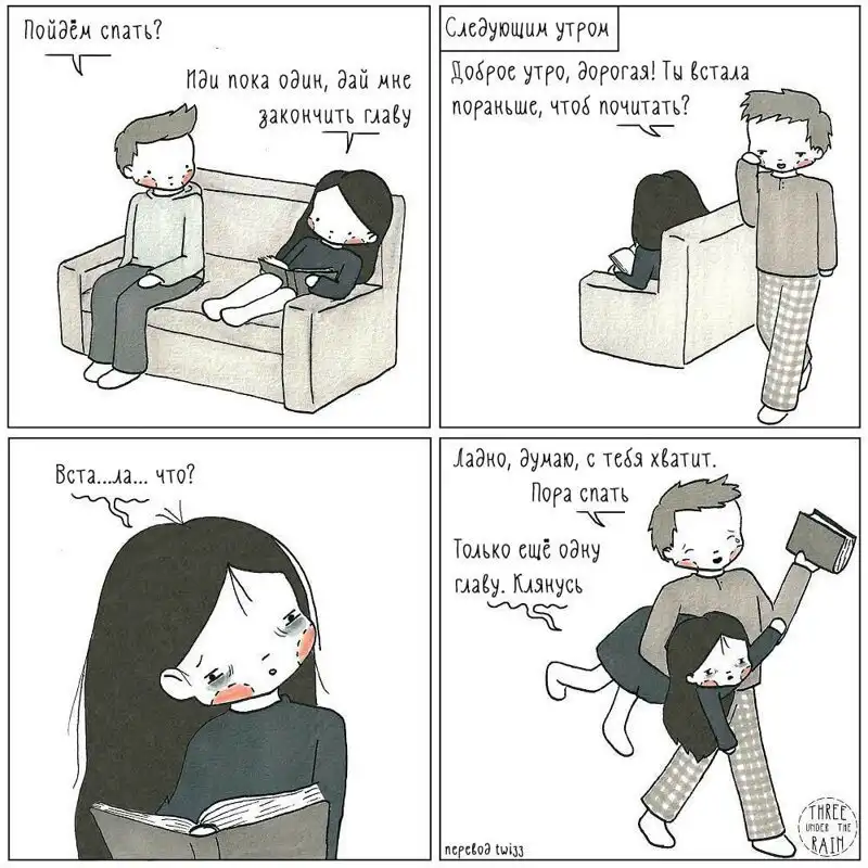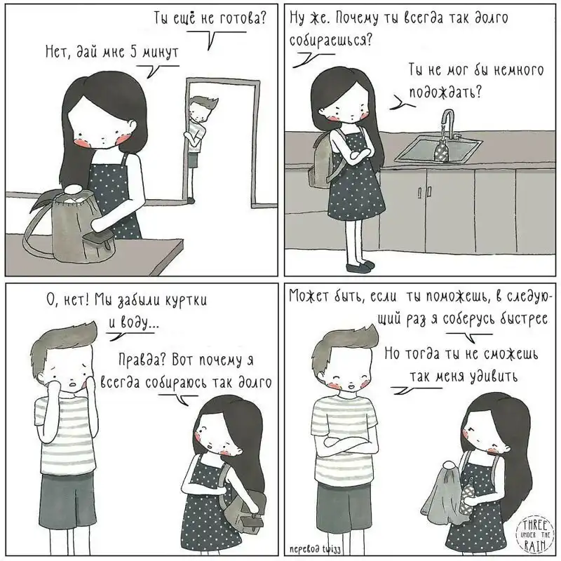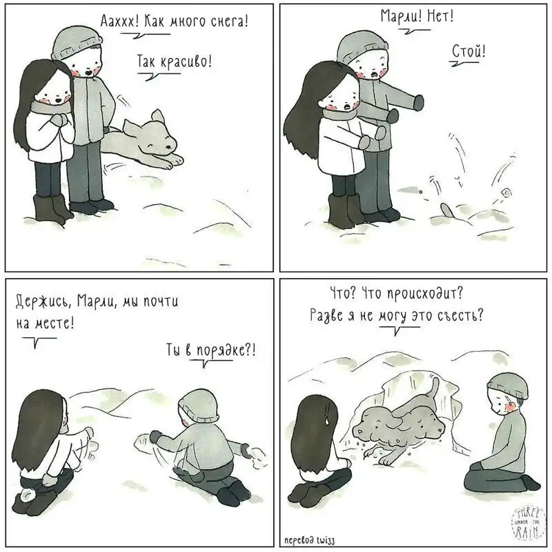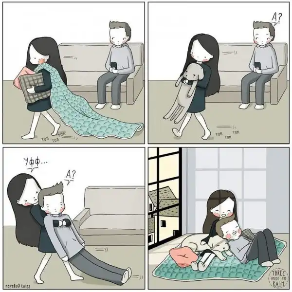Бриса - иллюстратор, которая рисует забавные, милые и романтичные аспекты своих дней. На страничке инстаграм Three Under The Rain (Трое под дождём), она публикует забавные и милые комиксы о себе, своём парне и их собаке Марли.