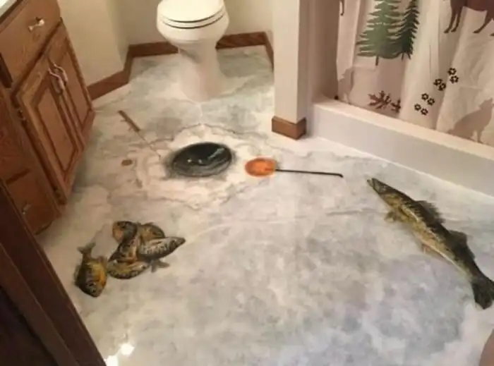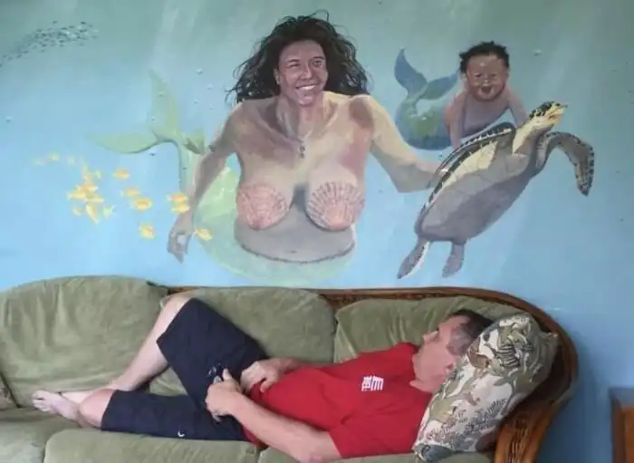 Сначала вы думаете, а зачем на потолке спальни плавающий слон? А потом понимаете, что вся спальня в кафельной плитке