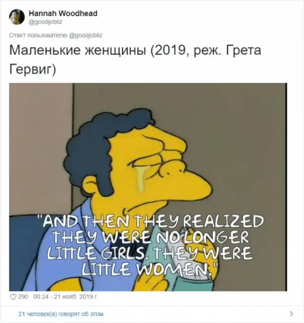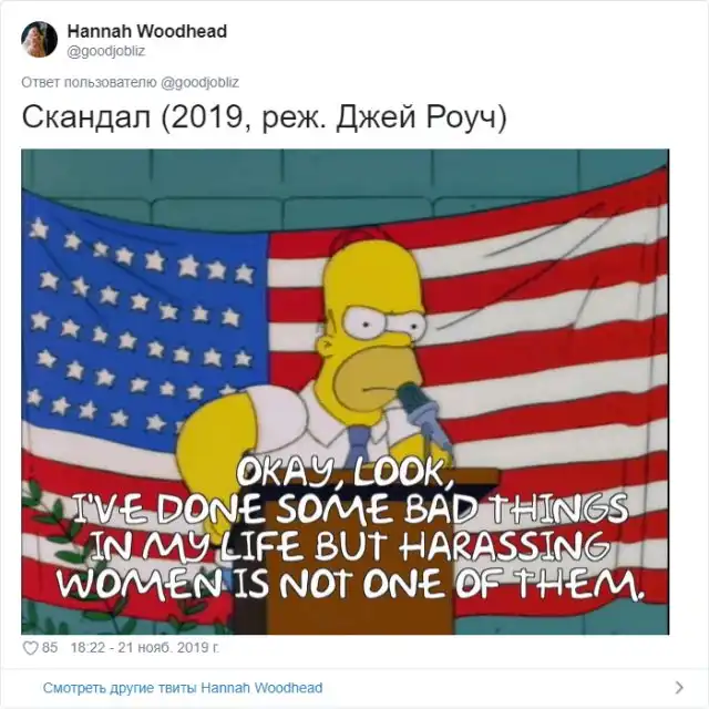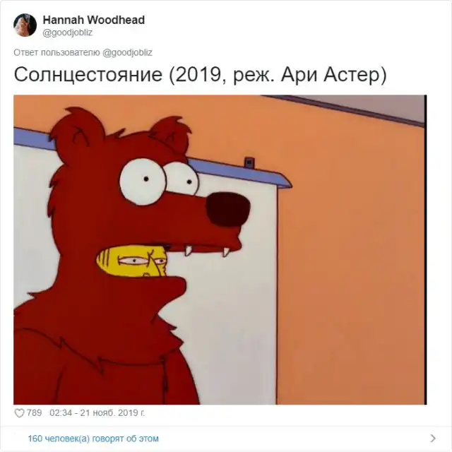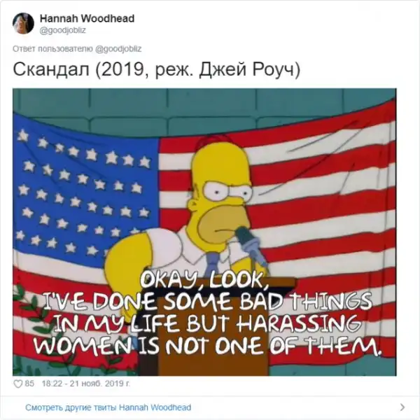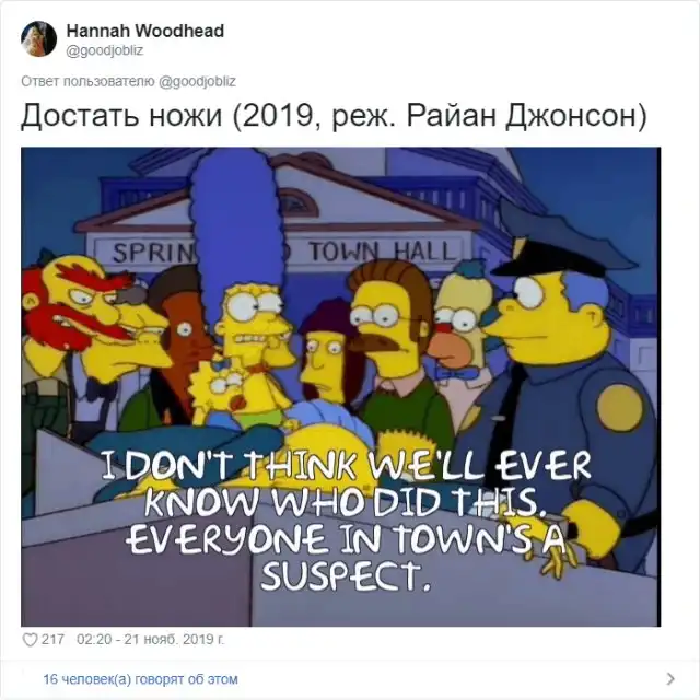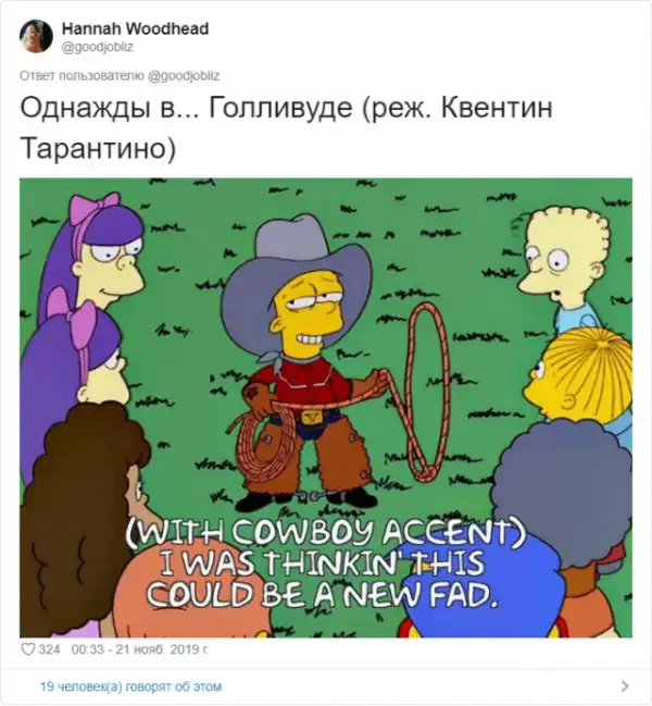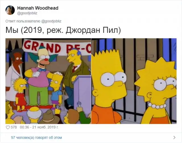 Теперь они взялись за киноновинки, которые вышли или выйдут в 2019 году. Поклонники говорят, что где-то девушка вырвала эпизоды из контекста сериала, но другие на полном серьезе рассуждают о магии Симпсонов. Осторожно, далее возможны спойлеры!