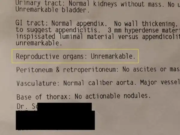 Описание моей томографии: "Репродуктивные органы: ничем не примечательны"