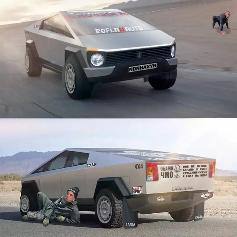 Как бы выглядели популярные наклейки на Tesla Cybertruck