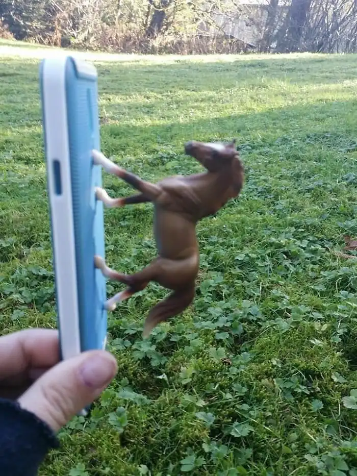 "Я приклеила эту дурацкую лошадь к чехлу смартфона, потому что решила, что за нее будет удобно браться, когда я лежу, - пишет Кей Типтон. - Но это была очень глупая идея".