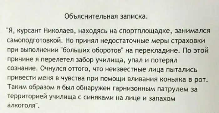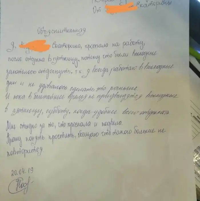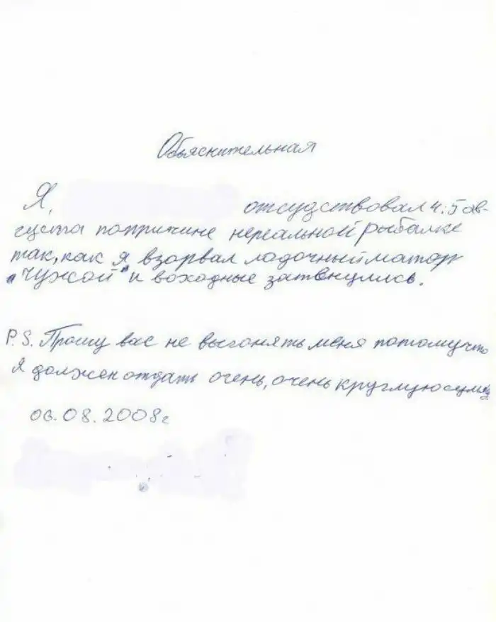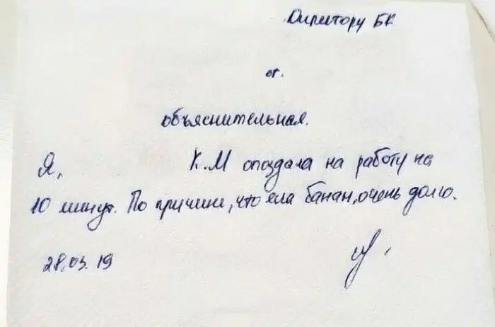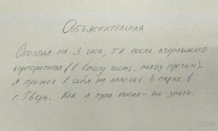 Многим из нас не раз приходилось писать служебные записки. К сожалению, не со всеми руководителями можно договориться "на словах". Мы собрали примеры объяснительных с лихими сюжетами, которые могут вас рассмешить.