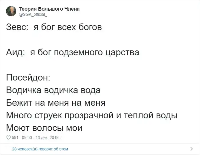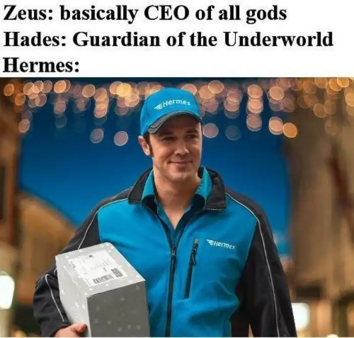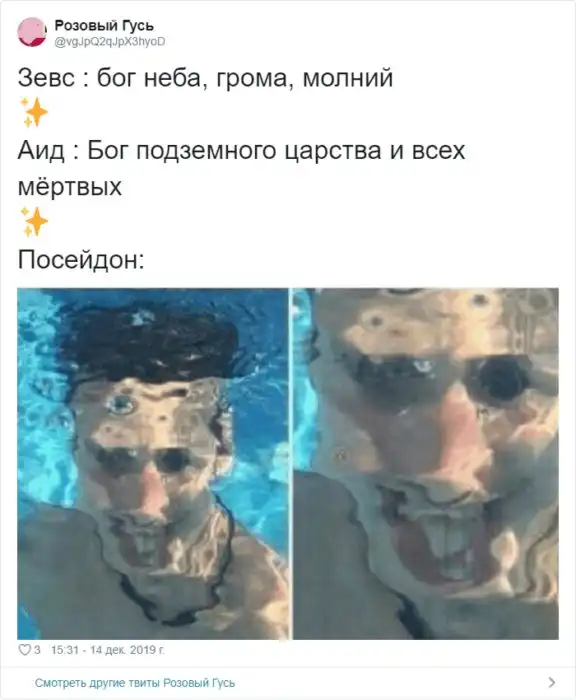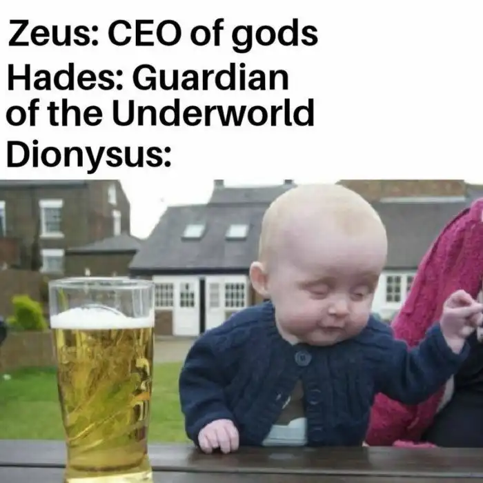 Например, познакомиться поближе с греческий мифологией. В декабре стало очень популярно объяснять род занятий богов при помощи мемов. Всё началось с пары картинок на Reddit и понеслось! Итак, перейдём к изучению!