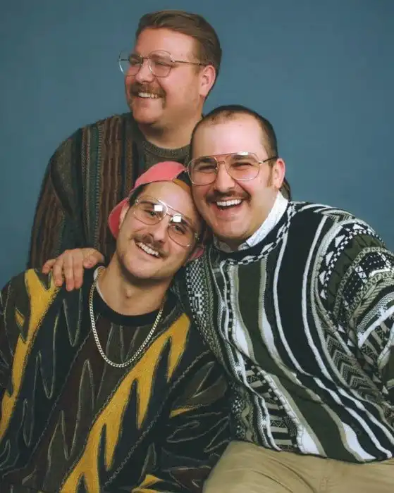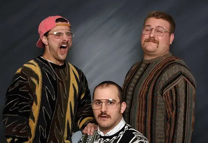 Подобрали одежду, аксессуары (вы только взгляните на эти свитера, очки и розовую бейсболку козырьком назад!), - все это прямо-таки взрыв из прошлого