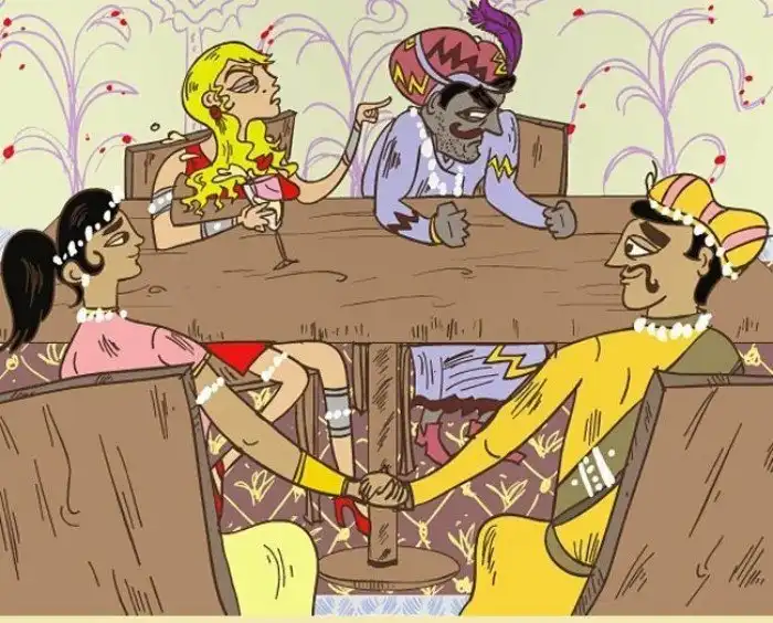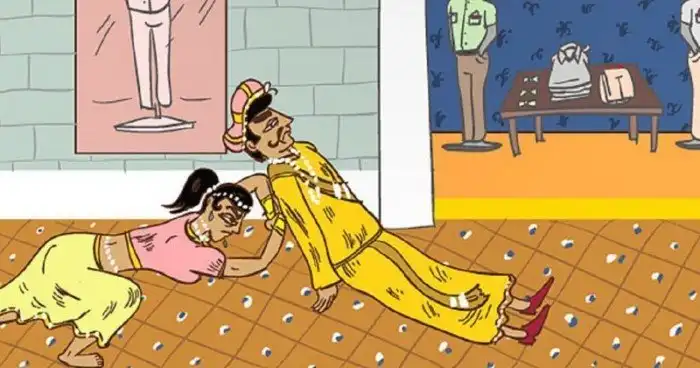 "Выбрасывание китов на берег": когда мужчина и женщина переели индийской еды, и их так раздуло от риса, что они не в силах даже разговаривать.