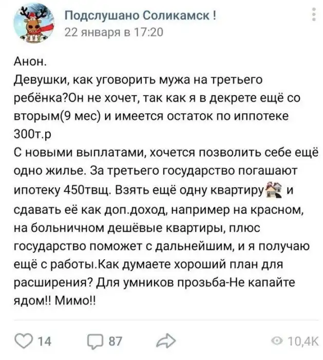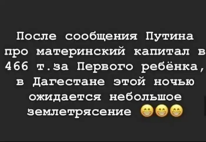 Если всё будет так, как обещал президент страны, то в скором времени рождение детей будет самым прибыльным видом деятельности. И стали то тут, то там появляться шутки про маткапитал. Заценим?