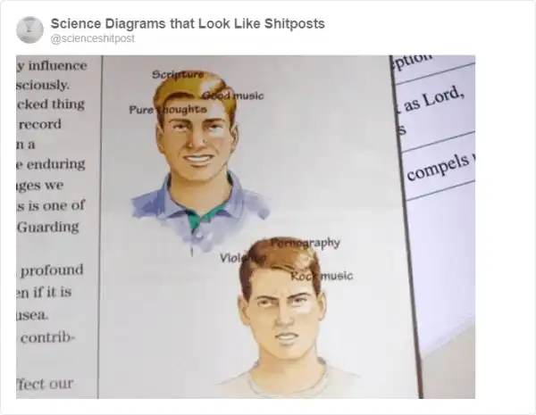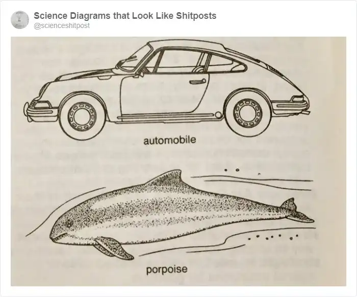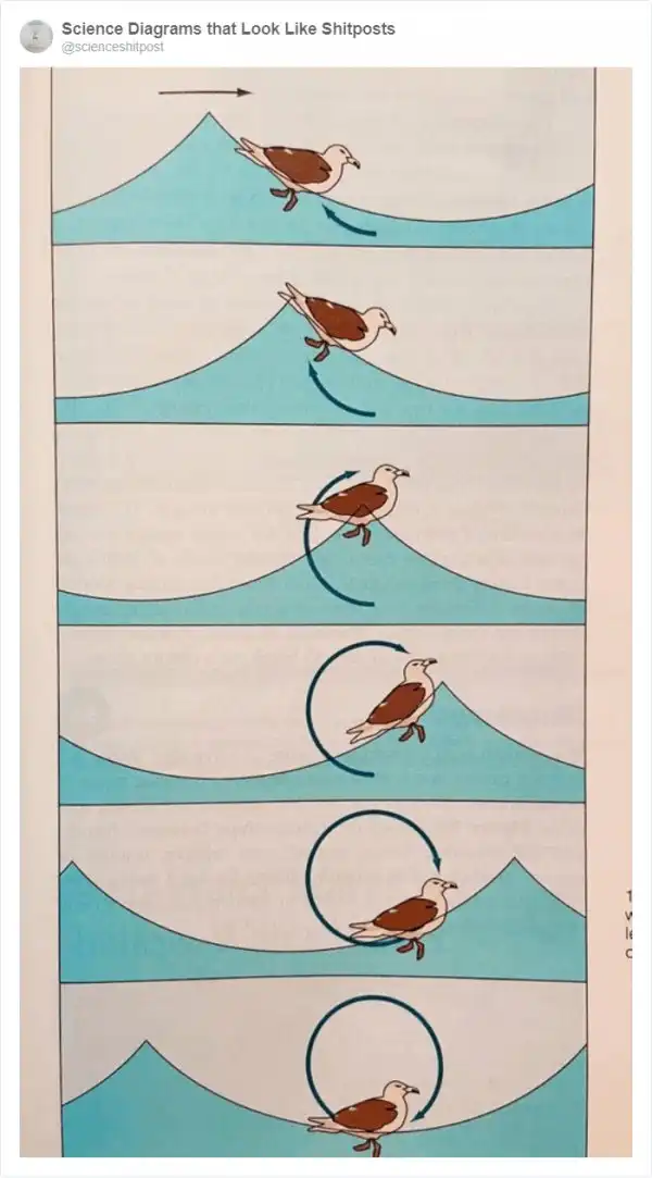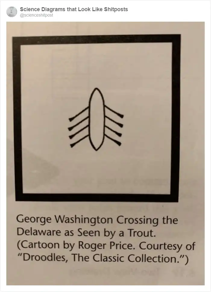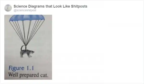 В Твиттер-аккаунте под названием Science Diagrams that Look Like Shitposts (приблизительный перевод: «Научные диаграммы, которые выглядят как упоротые картинки из интернета») постятся только реальные вырезки из печатных или онлайн-учебников по различным чаще всего техническим дисциплинам. Что именно демонстрируется на диаграммах — не уточняется, но выглядят они как какой-то прикол, хоть таковым и не являются.