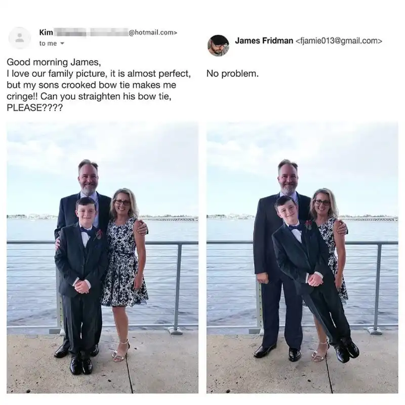 8. «У моего сына кривая бабочка, и это меня бесит. Можешь её выровнять?»