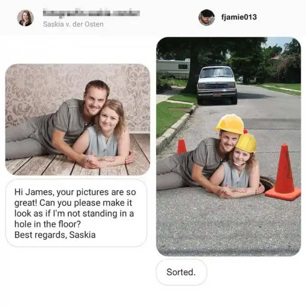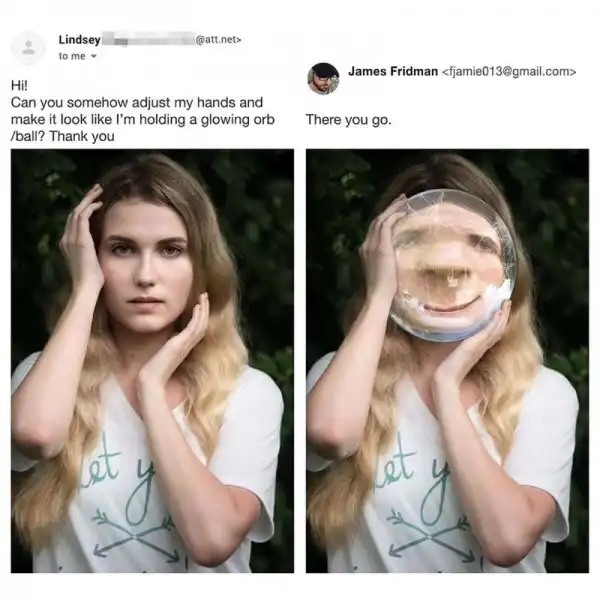 13. «Мне нравятся твои работы! Я подумал, может ты прифотошопишь мне девушку?»
