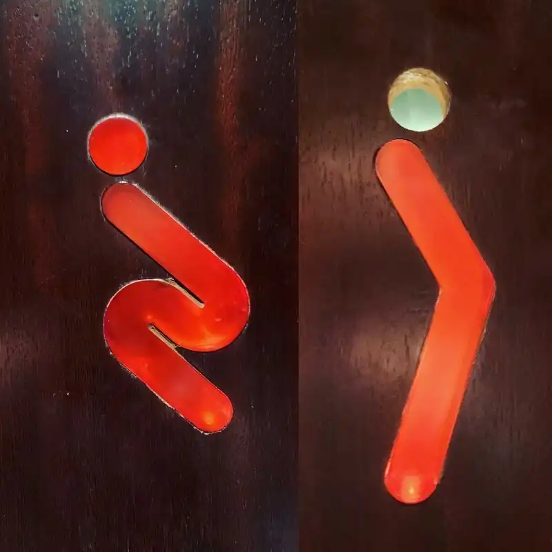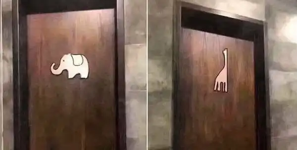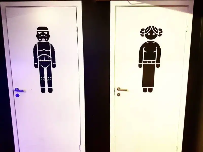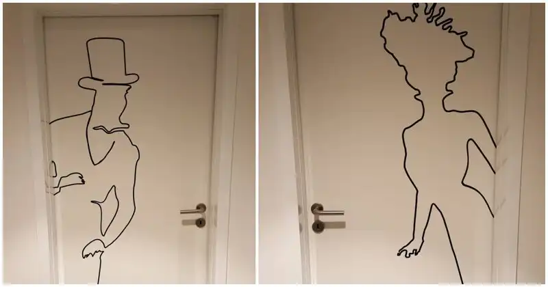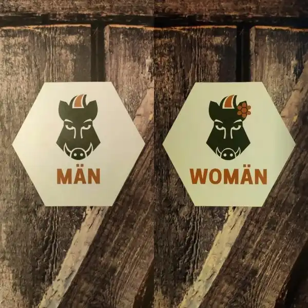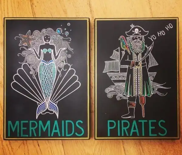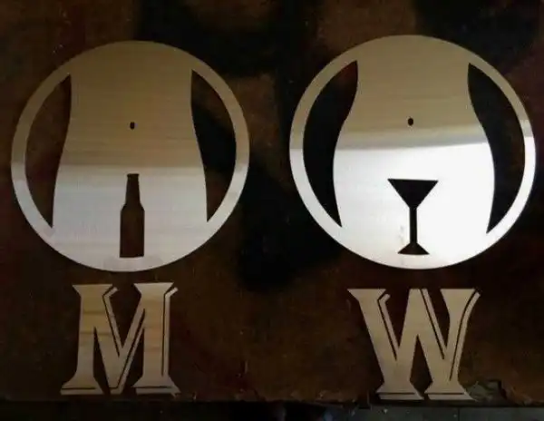 Часто туалетные таблички подбирают в одном стиле с заведением, тут морская тема
