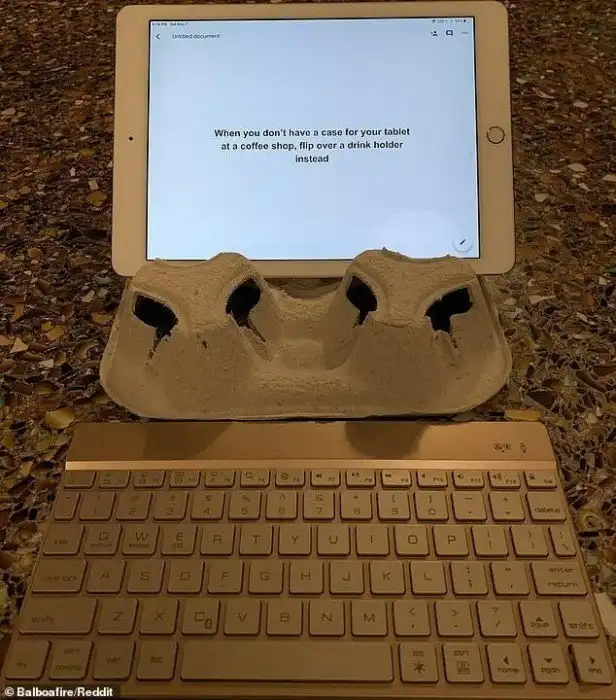 Оказывается, картонная подставка под чашки с кофе отлично справляется и с ролью подставки под планшет