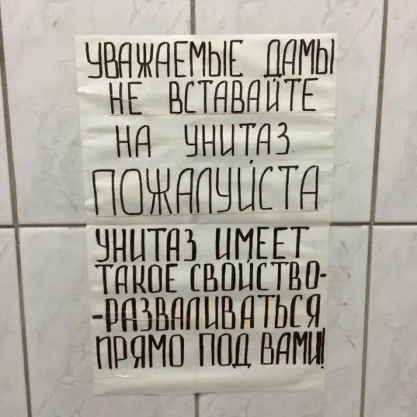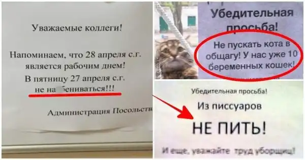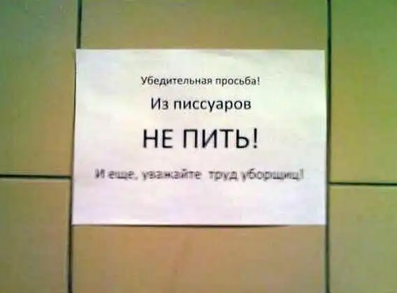 В кафе, больницах и других местах мы часто видим объявления с фразой "Убедительная просьба". Иногда их содержание заставляет улыбнуться, ведь то, что там написано - и так обычно не делают. Надписи бывают странные, нелепые и веселые. Мы собрали 17 объявлений, нарушать которые точно не следует.