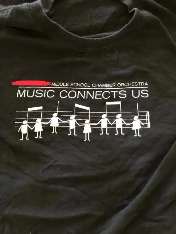 Футболки для школьного оркестра "Музыка нас соединяет" (а выглядит так, будто от нее хочется повеситься)