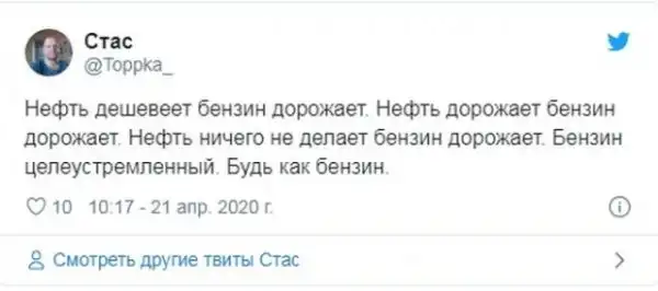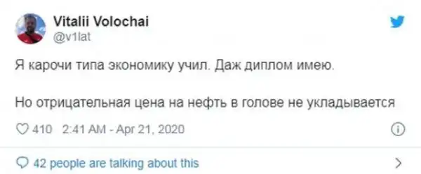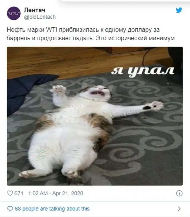 Ранее произошел странный случай - цена нефти WTI опустила ниже нуля и сырье торговалось на отметки в минус 40 долларов за баррель. Даже многие люди, изучавшие экономику, были поставлены в тупик происходящим. И пользователи в социальных сетях, разумеется, высмеяли происшествие.